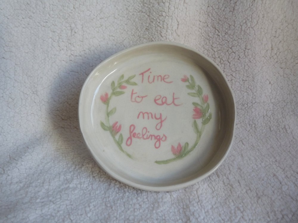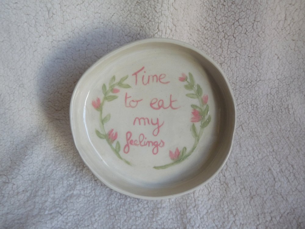 Inspirée de mes difficultés avec l’alimentation, cette assiette porte un message qui peut être lu sur un ton sombre ou humoristique. Le but de cette série est de poser des mots sur mes difficultés sur un objet sur quotidien qui n’est pas si facile à utiliser pour moi.
